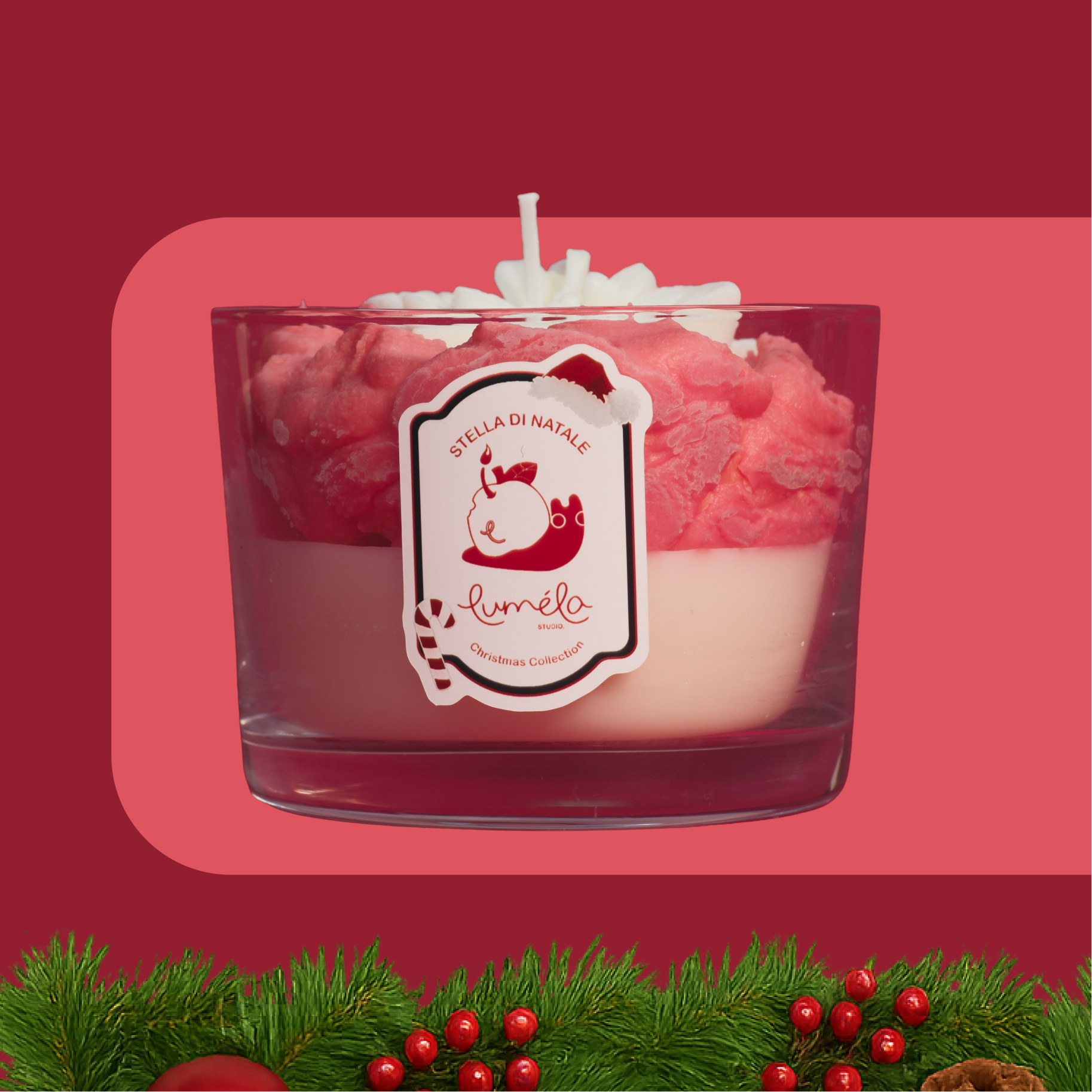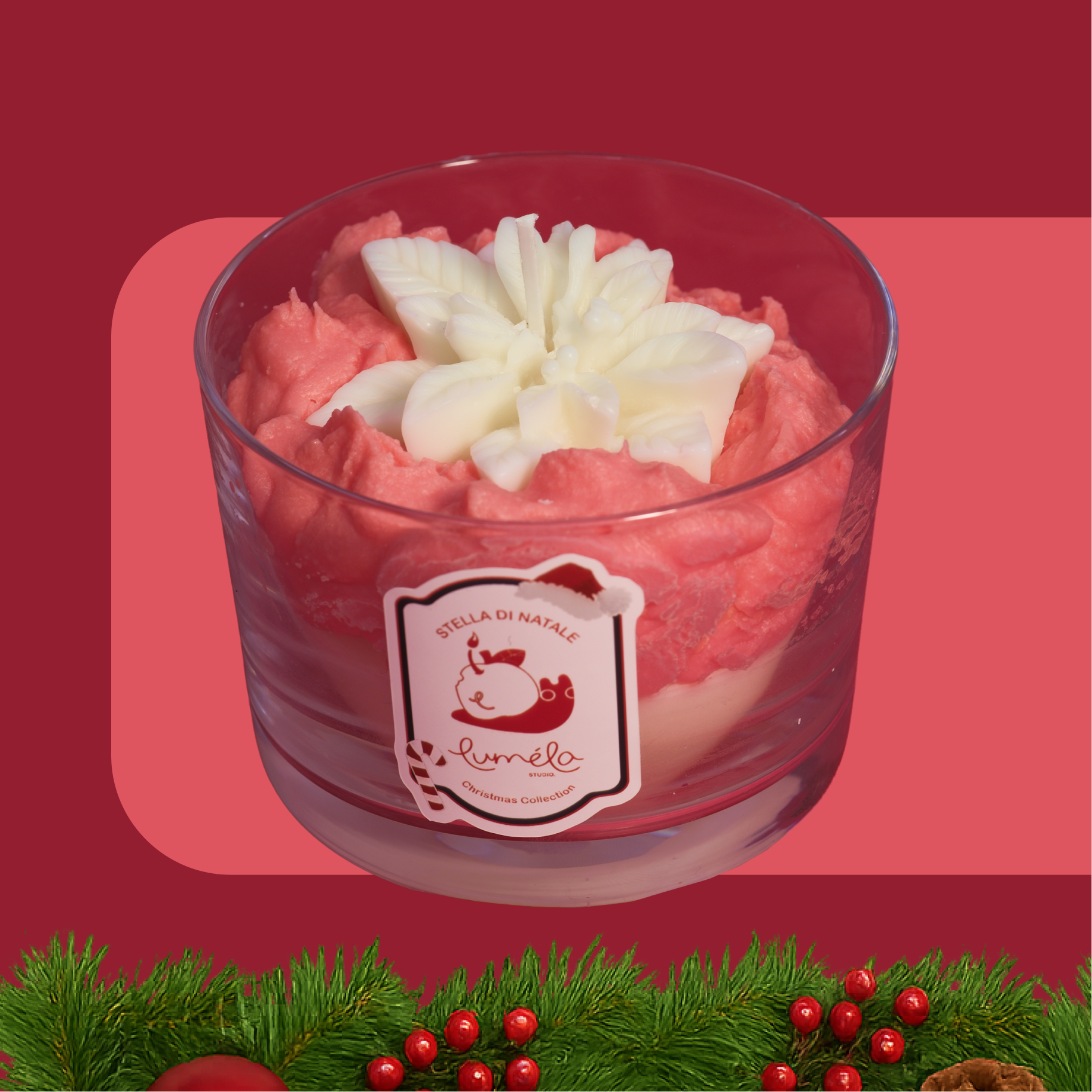 Celebra la bellezza delle feste con Stella di Natale, la candela che unisce eleganza e dolcezza in un solo profumo.